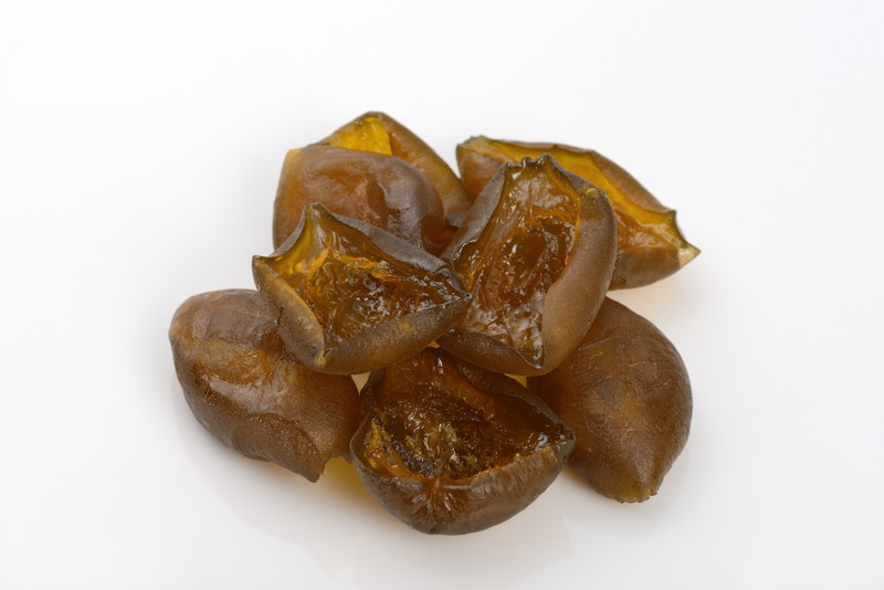 梅の果実は、古くから梅干し、シロップ漬け等広く食用としてもちいられています。ほどよい酸味が特徴で、クエン酸などの有機酸を含んでいるため、健康食品としても広く知られています。